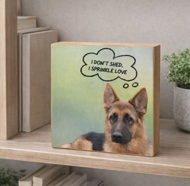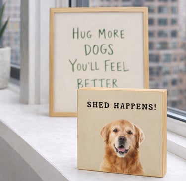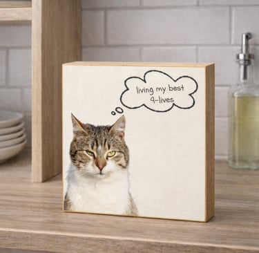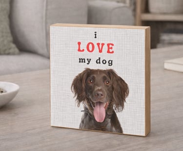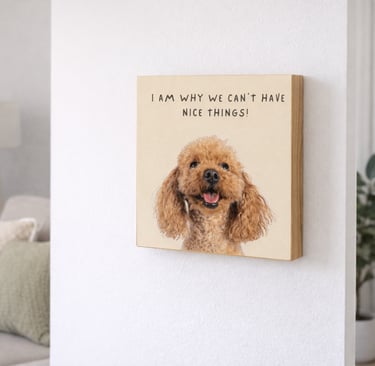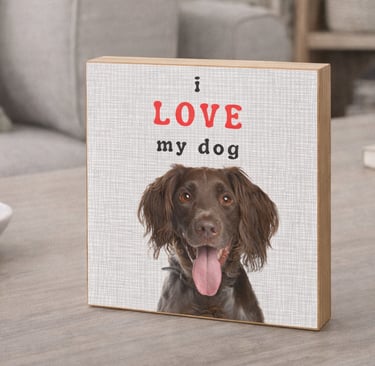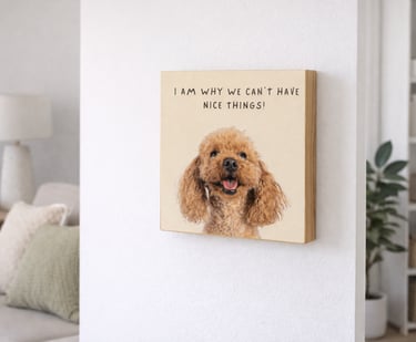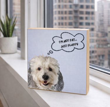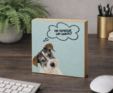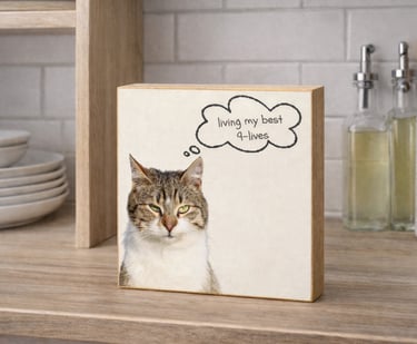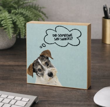 Handcrafted 6 x 6 wood blocks featuring your pet and a personalized message — from heartfelt to humorous.